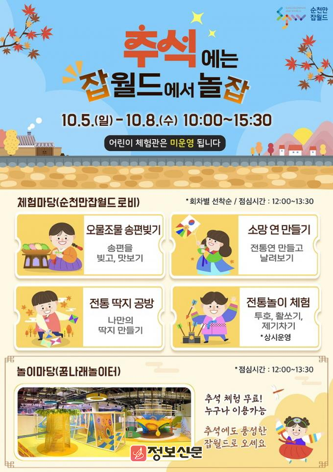 ![]() 순천시, 순천만잡월드에서 「추석에는 잡월드에서 놀JOB~」이벤트 개최 |