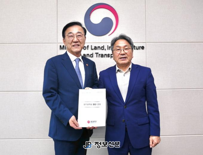 강 시장은 이날 김 장관에게 “현재 KTX 호남선은 공급 한계로 철도 이용과 생활 인구 유입이 어려운 현실”이라며 “이재명 정부의 5극3특 균형발전을 이루기 위해서라도 호남선 공정 운행은 필수적인 선결 과제”라고 강조했다.