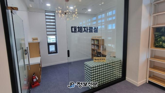대체자료실은 국립장애인도서관이 추진한 「2025년 독서보조기기 지원사업」 공모에 선정돼 마련됐다. 센스원(화면 낭독 프로그램) 노트북, 하하3(보청기기), 비소룩스(독서확대기), 돋보기안경 세트 등 다양한 독서보조기기를 갖췄으며, 큰글자책 85권, 수어도서 40권, 점자도서 3권을 포함한 총 128권의 대체자료도 비치했다.