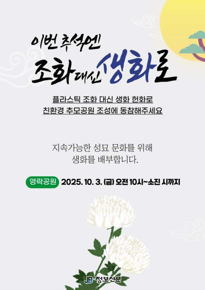 정미경 자원순환과장은 “지속 가능한 성묘 문화를 위해서는 작은 실천이 중요하다”며 “플라스틱 조화 대신 생화를 사용해 친환경 추모공원 조성에 함께해 주길 바란다”고 당부했다.