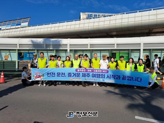 추석명절 연휴를 맞아 렌터카 교통사고예방과 5대 반칙운전 근절을 위해 ’25. 10. 2.(목) 10:00, 제주국제공항 렌터카하우스 부근에서 서부서 교통관리계, 자치경찰단, 道교통정책과, 한국도로교통공단, 한국교통안전공단, 렌터카조합 등이 참석하여 입도 관광객들을 대상으로 ▲음주운전 금지 ▲5대 반칙운전(꼬리물기·끼어들기·새치기유턴 등) 금지 ▲全좌석 안전띠 착용을 홍보하는 등 합동 교통안전 캠페인을 실시하였다.
