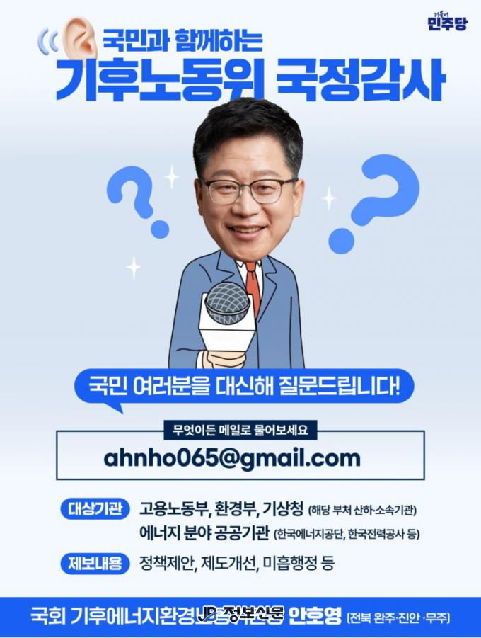 안 위원장은 도민들의 제안을 토대로, 기후위기 대응과 에너지 전환, 노동정책 전반에 대한 국감 점검 방향을 구체화하고 있다.