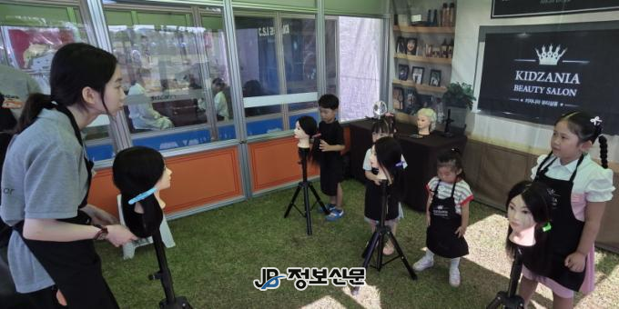 ![]() ‘키자니아 뷰티살롱’ 체험부스에서 아이들이 미용관련 직업 교육을 받고 있는 모습.(사진제공-나주시)