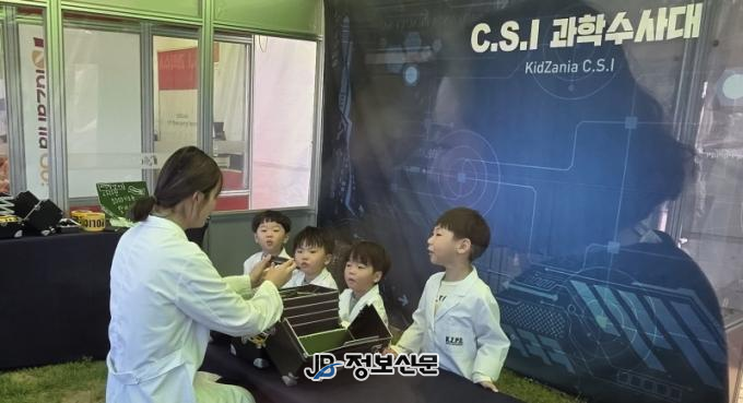 ![]() 아이들이 C.S.I 과학수사대 직업 관련 내용을 들으며 생생한 직업 체험을 즐기고 있는 모습.(사진제공-나주시) |