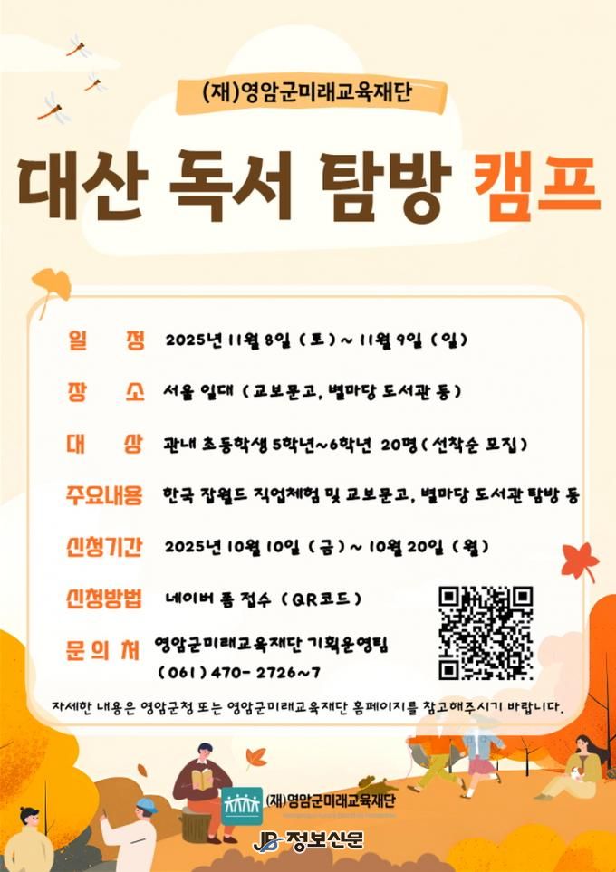 ![]() 영암군미래교육재단, 대산 독서 탐방 캠프 참가자 모집 |