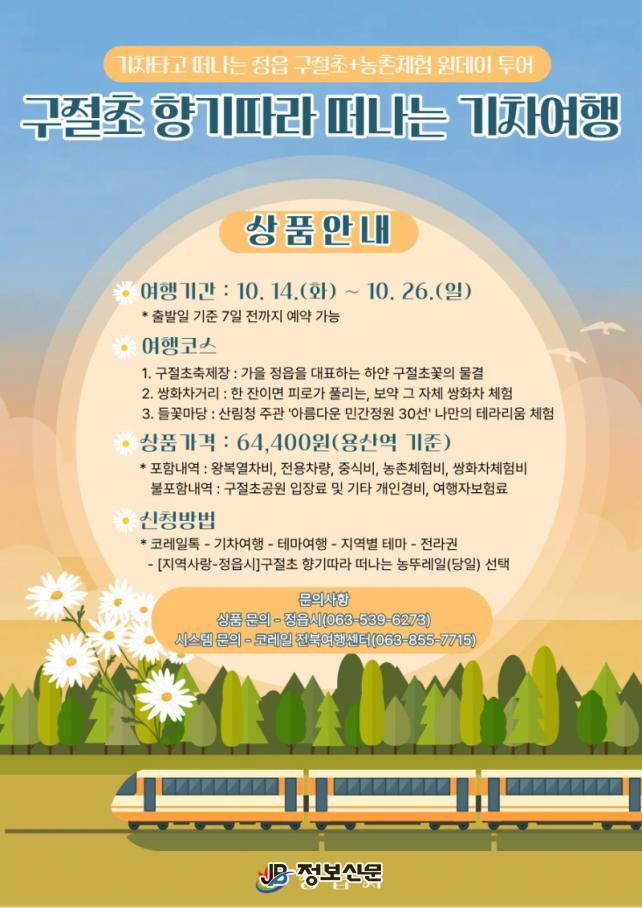 ![]() 정읍시, 농뚜레일 투어 참가자 모집 |