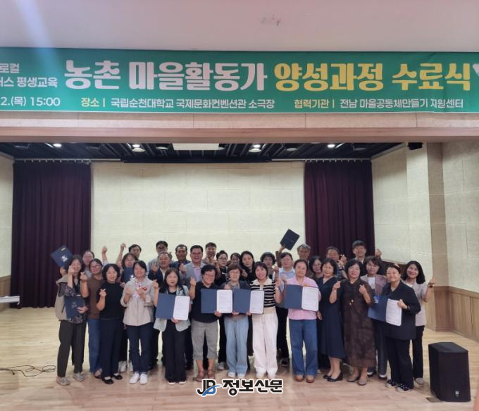 국립순천대는 지난 2일 국제문화컨벤션관에서 ‘2025 농촌마을활동가 양성과정’ 수료식을 개최했다고 밝혔다.