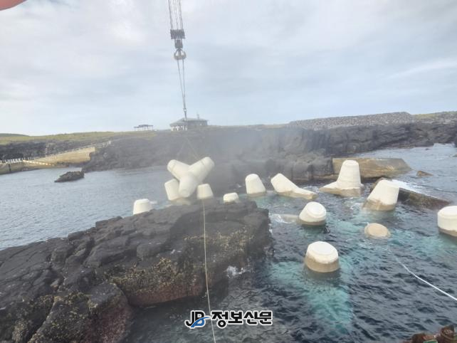 서귀포시는 올해 6월 T.T.P 64톤 45개 제작하였고 10월 초 250톤급 기중기선을 통해 최종 거치를 완료하여, 현재 전체 사업을 마무리하였다.
