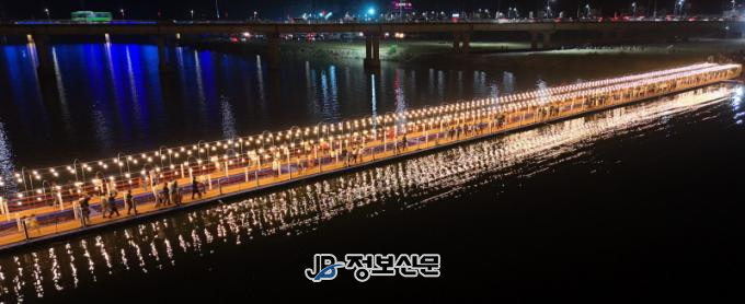 특히 나주영산강축제의 볼거리 중 하나인 ‘영산강 횡단보행교’는 이번 축제에서 더욱 눈부신 변화를 선보였다.