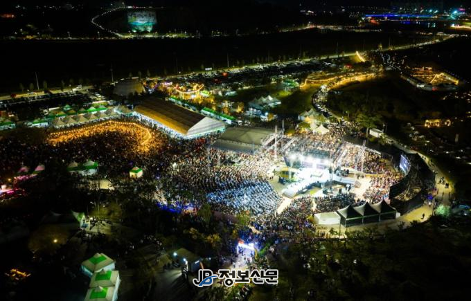 개막 주제공연 창작뮤지컬 ‘왕후, 장화’, 트로트 가수들의 축하공연, 뮤지컬 배우들과 함께한 뮤지컬 빅쇼, 젊은 청년세대를 겨냥한 케이팝 콘서트, 모든 음악 장르가 어우러진 올어바웃뮤직, 박지현과 린이 장식한 폐막 축하공연까지 주무대 관객석은 물론 잔디광장까지 매일 밤 방문객들로 인산인해를 이뤘다.