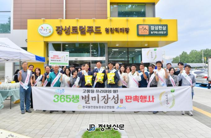 쌀전업농 회원과 김한종 장성군수, 장성군 농협알피씨(RPC) 대표 등 50여 명이 직매장 고객들에게 홍보용 장성햅쌀 400개를 증정하며 장성쌀의 우수성을 알렸다.