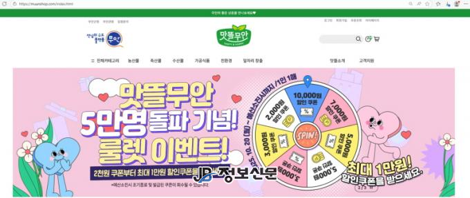 이와 함께 맛뜰무안몰 회원 수 5만 명 돌파 기념 감사기획전이 진행된다. 10월 20일부터 시작되는 룰렛 이벤트는 ‘맛뜰무안몰’ 회원 누구나 참여할 수 있으며, 룰렛을 돌려 최대 1만원의 할인쿠폰을 무작위로 제공한다.