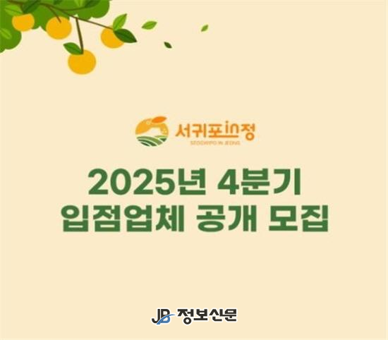 ![]() 서귀포시, ‘서귀포in정’2025년 4분기 입점업체 공개모집 |