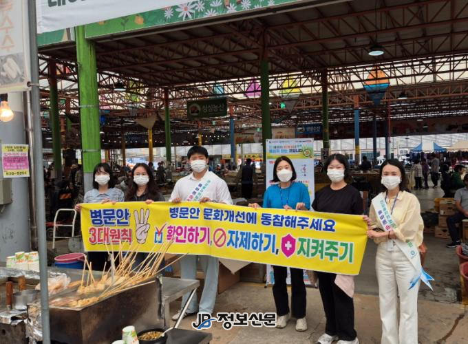 특히 추석 연휴를 앞둔 10월 1일 광양읍 5일시장 일원에서 ‘병문안 문화개선 캠페인’을 전개하고, 병문안 문화개선 3대 원칙인 ▲확인하기(병문안 가능시간·장소 확인) ▲자제하기(환자를 위해 병실 면회 자제) ▲지켜주기(손 위생, 기침 예절 등 예방수칙 지키기)의 생활 속 실천을 시민들에게 당부했다.