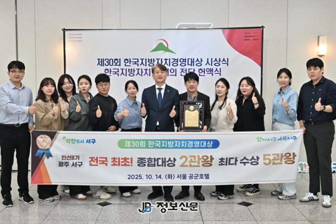 지난 2023년에 이어 올해도 종합대상을 수상함으로써 민선8기 최초 종합대상 2관왕의 기록을 세웠으며 ▲2023년 종합대상, 주민자치대상 ▲2024년 복지보건대상, 인재육성대상에 이어 올해 종합대상까지 더해 ‘최다 수상 5관왕’을 달성했다. 이처럼 한 임기 내 ‘전국 최초’이자 ‘최다 수상’의 기록을 세운 것은 한국지방자치경영대상 역사상 광주 서구가 유일하다.
