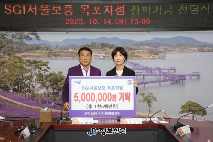 ![]() SGI서울보증 목포지점, 신안군 인재 육성에 500만 원 기탁 |