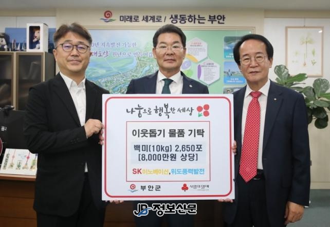 권익현 부안군수는 “이번 기탁은 단순한 물품 지원을 넘어 지역주민의 삶에 실질적인 도움이 되는 뜻깊은 나눔이며, SK이노베이션과 위도풍력발전이 지역주민과 상생하며 진정한 지역발전의 모델을 만들어가길 기대한다”고 말했다.