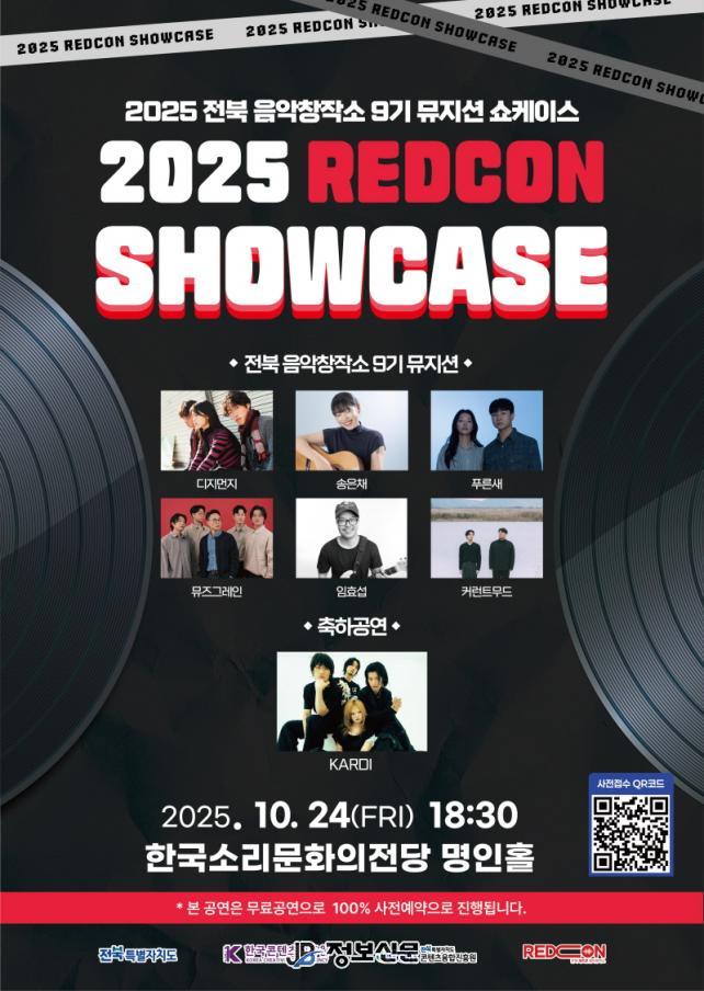 ![]() (재)전북특별자치도 콘텐츠융합진흥원, 2025 전북 레드콘 음악창작소 9기 뮤지션 쇼케이스 개최 |