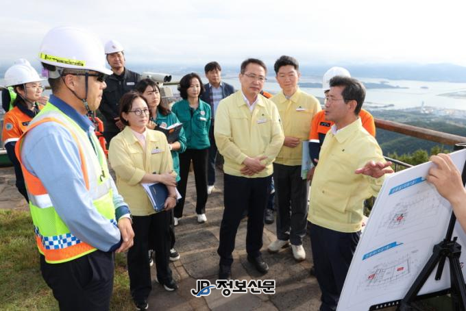 이어서 정 시장은 광양제철소와 이순신대교, 순천·여수·남해를 한눈에 조망할 수 있는 구봉산 정상 일원에서 추진 중인 ‘구봉산 체험형 조형물 조성사업’ 현장을 방문했다.