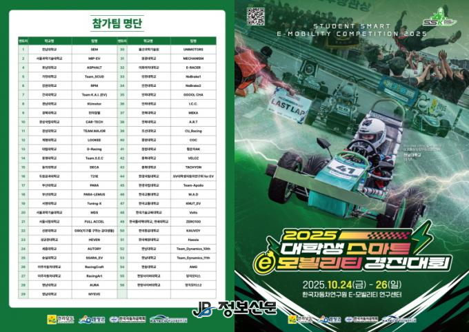 올해 대회는 전국 43개 대학 55개 팀, 1,500여 명의 대학생이 참가해 그 어느 때보다 치열한 경쟁을 펼칠 예정이다. 출전 차량은 10kW 이하 전기모터를 장착한 초소형 전기차급 모빌리티로, 성능검사·가속·슬라럼·내구레이싱 등 기술력과 주행성능을 종합 평가하는 경기로 진행된다.