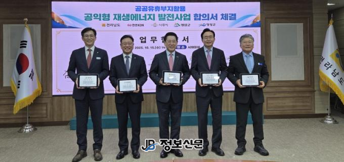 나주시(시장 윤병태)는 15일 전남도청에서 전라남도, 영암군, 영광군, 한전KDN(주)과 함께 ‘공익형 재생에너지 발전사업’ 업무협약을 체결했다고 밝혔다.
