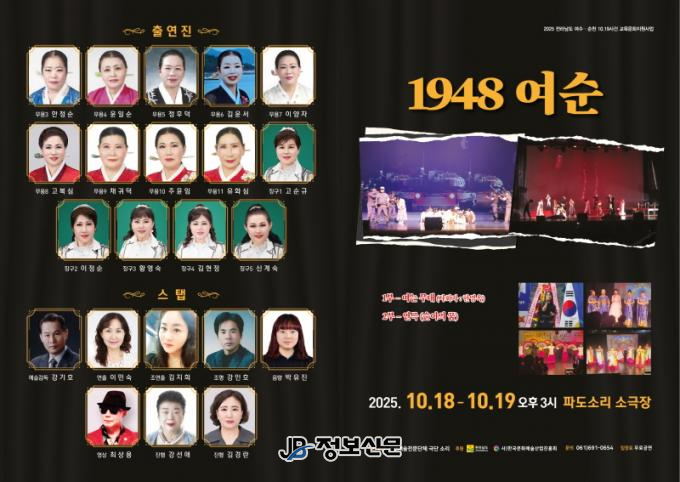 극단 소리는 오는 18~19일 오후 4시 여수파도소리소극장에서 연극 ‘1948여순’을 선보인다. 1948년 여수의 현실을 지역 노래와 시, 안무 등을 활용해 감성적으로 그려내며, 예술을 통해 비극의 역사를 되새기고 치유와 공감의 메시지를 전달한다.