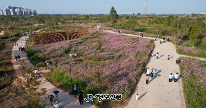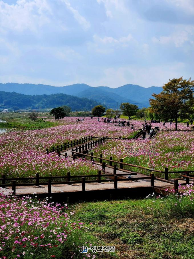 나주 영산강정원은 분홍, 노랑 등 형형색색의 대규모 코스모스 꽃길이 조성됐다. 꽃길을 따라 걷다 보면 곳곳에 포토존이 마련돼 사진을 찍으며 추억을 남길 수 있다.
