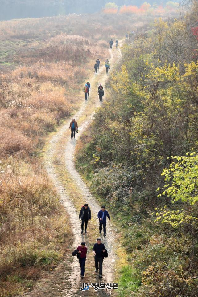 참가자들은 무주군 부남면 잠두강변길에 집결해 요대마을, 안요대마을을 거쳐 무주읍 서면마을 소이나루 공원까지 7.4km를 함께 걸으며 금강변 산야에 깃든 가을의 정취를 만끽했다.