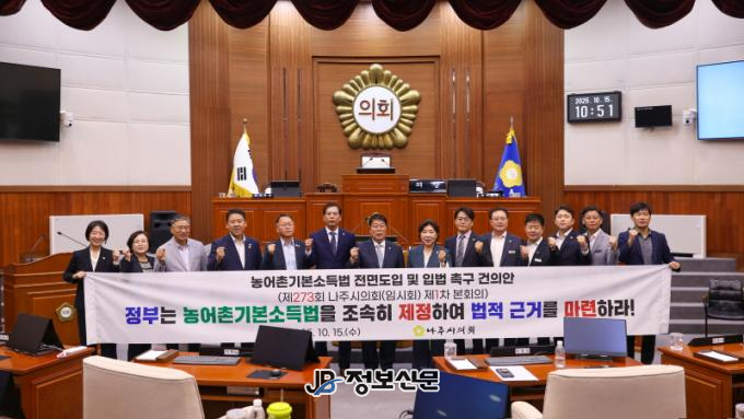 ![]() 나주시의회, ‘농어촌기본소득법 전면도입 및 입법 촉구 건의안’ 채택 |