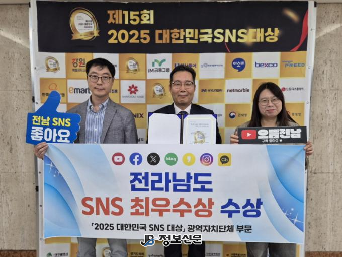 전남도는 지난 7월 ‘소셜아이어워드 2025’에서 광역자치단체 블로그 ‘대상’, 유튜브·인스타그램 ‘최우수상’ 수상에 이어, 이번 대한민국 SNS 대상 ‘최우수상’을 받아 국내 양대 SNS 어워드 수상이라는 쾌거를 이뤘다.