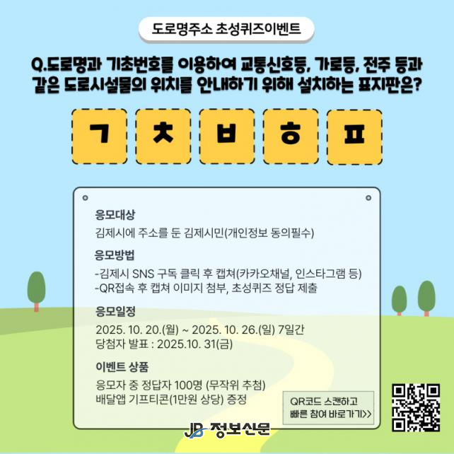 ![]() 김제시, 도로명주소 SNS 초성퀴즈 이벤트 실시 |
