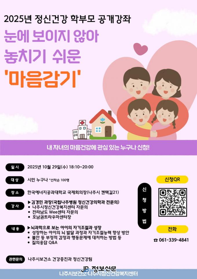 ![]() 나주시 보건소, ‘2025년 정신건강 학부모 공개강좌’ 개최 |