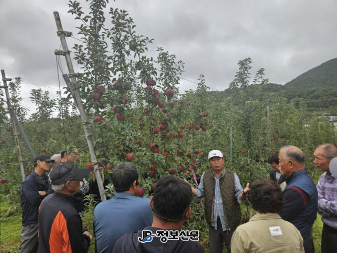 이번 견학은 곡성군 사과 재배농업인 30명이 참석한 가운데, 사과 다축 재배 기술과 과원 관리 기법을 현장에서 직접 보고 배우는 실질적인 교육의 장으로 마련되었다.