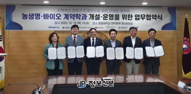 협약에 따라 원광대학교는 2026년도 개설을 목표로 도내 최초의 ‘선취업·후학습형 농생명·바이오 계약학과’를 개설하고, 푸드태크·바이오 융복합 전공을 중심으로 현장 맞춤형 교육과정을 운영할 예정이다. 이를 통해 도내 직업계고 졸업생들이 지역 산업 현장에서 경력을 쌓으면서 동시에 학업을 이어갈 수 있는 시스템을 마련한다.