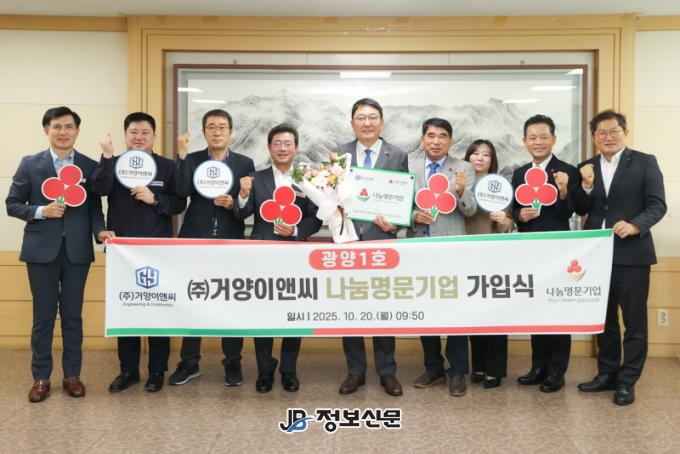 ![]() ㈜거양이앤씨, ‘전남사랑의열매 나눔명문기업’ 광양시 1호 가입 |