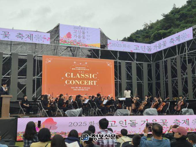 이번 오케스트라 음악회는 '2025 화순고인돌가을꽃축제를 맞아 축제장 주무대에서 펼쳐져 축제장을 찾은 관광객과 주민들에게 아름다운 선율을 선사했다.