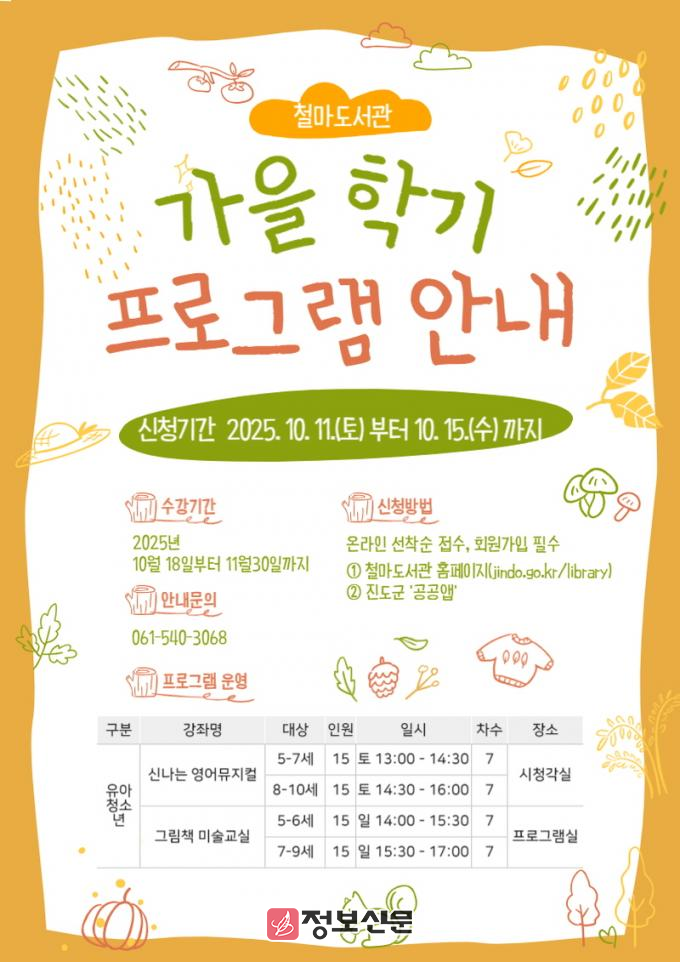 ![]() 진도군, 철마도서관 2025년 가을학기 프로그램 개강 |