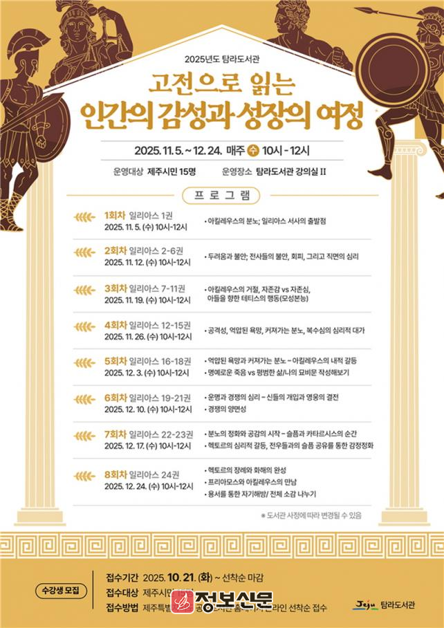 ![]() 탐라도서관, 고전으로 읽는 인문학 프로그램 참여자 모집 |