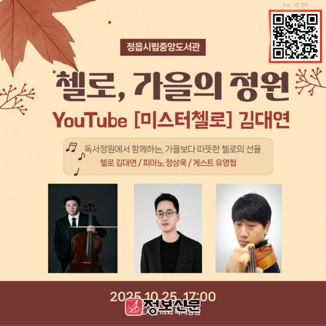 이번 행사의 백미는 ‘첼로, 가을의 정원’ 초청 공연이다. 유튜브 ‘미스터첼로’로 유명한 김대연 첼리스트와 빈 국립음대에서 학·석사 및 전문연주자 과정을 마친 정상욱 피아니스트가 협연해 가을밤을 따뜻한 선율로 채울 예정이다.