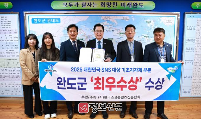 ![]() 완도군, 대한민국 SNS 어워드 ‘최우수상’ 2년 연속 수상