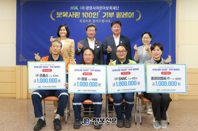 ![]() 광양시어린이보육재단, 보육사랑 100인+기부 릴레이 기탁식 개최 |
