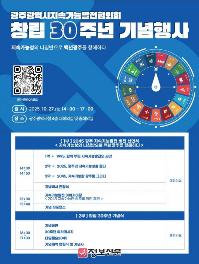 정현윤 기후환경국장은 “광주지속가능발전협의회 30주년 기념행사는 광주시가 지속가능한 미래를 향한 의지를 다지는 중요한 자리”라며 “많은 시민들이 관심을 갖고 적극 참여해 주길 바란다”고 말했다.