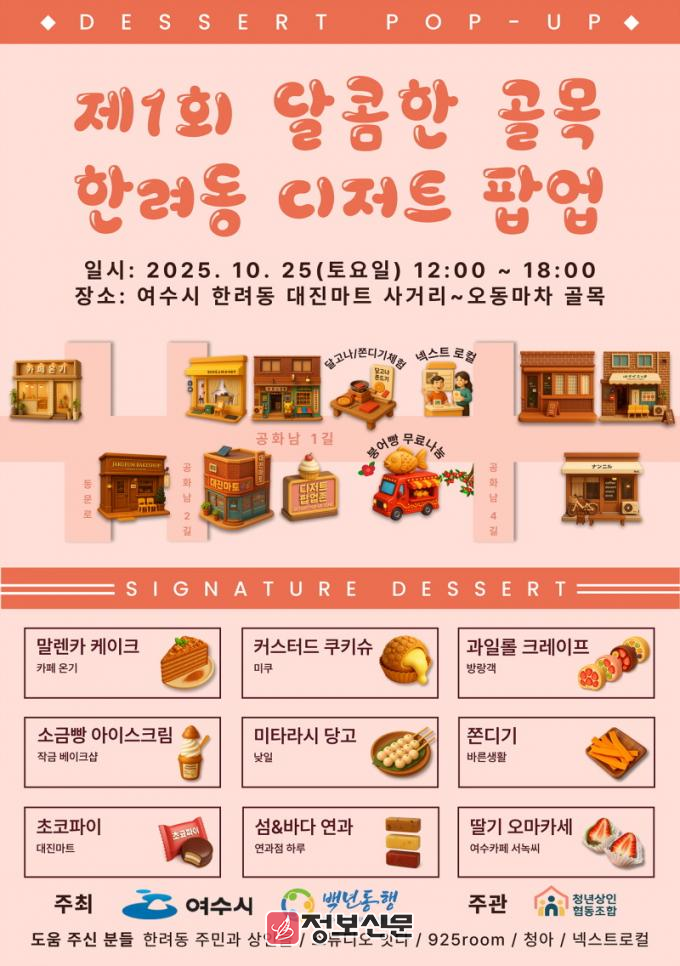 ![]() 여수시, 한려동 ‘디저트 팝업’ 개최…청년 창업·지역상권 활성화 |
