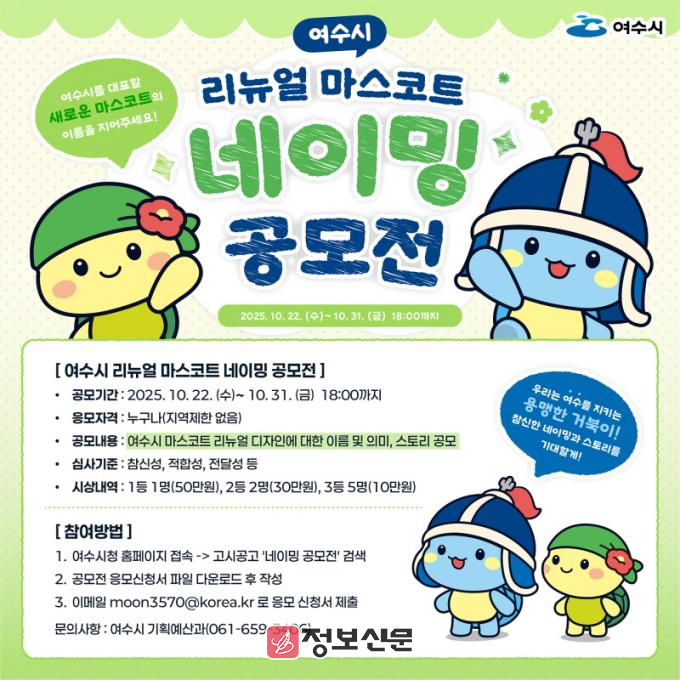![]() 여수시, ‘리뉴얼 마스코트 네이밍 공모전’ 개최 |