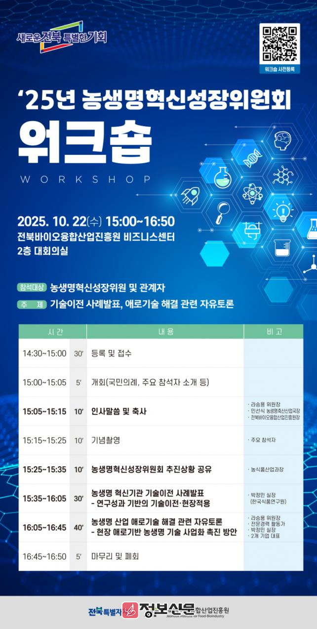 ![]() 전북특별자치도, 2025년 농생명혁신성장위원회 현장중심 워크숍 개최 |