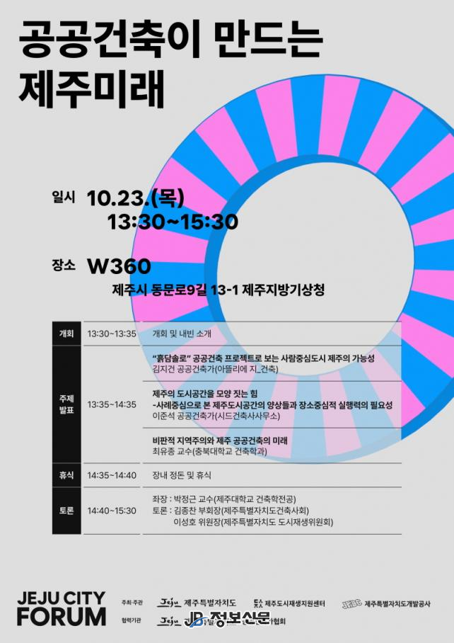 자세한 내용은 제주특별자치도 도시재생지원센터(www.jejuregen.org) 「제주도시포럼 2025」 배너 또는 전화문의(064-727-0635)를 통해 확인할 수 있다.
