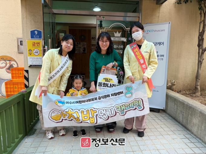 ![]() ▲ 여수시 어린이·사회복지급식관리지원센터는 성장기 어린이의 건강한 식습관 형성을 위해 지난 20일부터 23일까지 ‘아침밥 먹기 캠페인’을 실시했다.