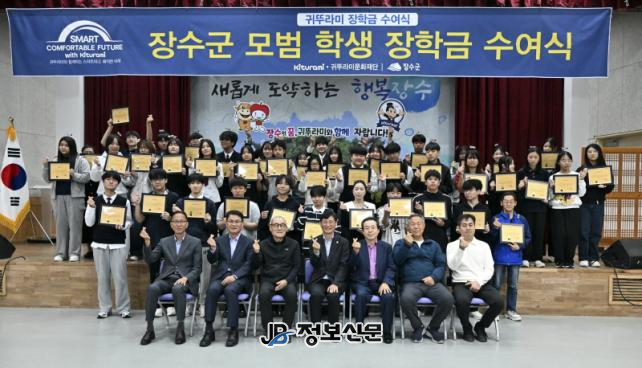 이번 행사는 귀뚜라미그룹과 장수군이 함께 지역의 우수한 학생들을 격려하고 미래 인재로 성장할 수 있도록 지원하기 위해 마련된 자리로, 관내 중·고등학생 50명에게 총 5천만 원의 장학금과 장학증서가 전달됐다.