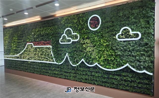 성산일출봉을 주요 테마로 각 1층과 3층에 수직(벽면)정원 4개소(128㎡)와 2층에 수평정원 1개소(39㎡)의 플랜터를 조성하여 건물 층별 특색을 맞추었고, 산호수나무 외 10종·101주 및 초화류 섬기린초 외 4종·237본, 공기정화에 탁월한 실내정원 식물 약 6,400여 본을 식재해 전체적인 조화를 이루었다.