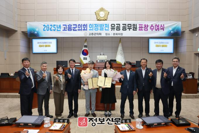 이번 표창은 의정활동을 성실하게 지원하고, 의회와의 협력 관계 속에서 행정의 효율성과 신뢰도를 높이는 데 공헌한 공무원의 노고를 격려하기 위해 마련된 자리로, 고흥군청 신수호 주무관, 장수정 주무관, 임자영 주무관이 그동안의 헌신적인 노력과 성실한 근무 자세를 인정받아 수상하였다